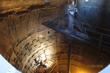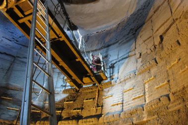 - Installation of stave row anchors from the moveable platform.