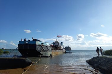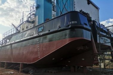 Due to time constraints, the vessel was dry docked in an uncustomary manner by means of beaching the vessel during spring high tide (near a Mozambique Port).