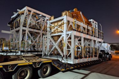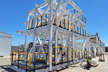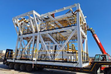 The critical works to be ready for the InPort ‘window’ was the fabrication, trial assembly, dis-assembly and transport to the Port of the Aft Comminution Module. This new Module was designed and engineered to be split into 3 large transportable units to facilitate easier (lower risk) rigging and installation onto the deck of the SS Nujoma.