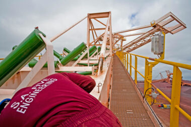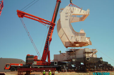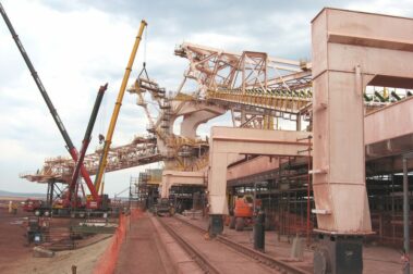 The mechanical erection of a 10,000 ton per hour Stacker Reclaimer at the Iron Ore harbour in the Port of Saldanha consisting of the mechanical assembly of all main and secondary components, the assembly and installation of various conveyor systems complete with 3 x 500Kw long travel drive units, as well as the installation of 30 x 11kw long travel drive units.